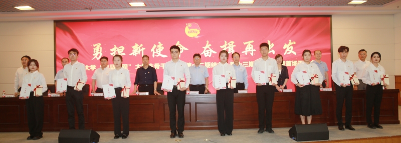 党委学生工作部(处)、武装部部(处)长刘芝宣读了优秀学员名单和第十三期大学生骨干培训班各支部班主任名单。与会领导老师为结业优秀学员代表颁发优秀学员证书和青马鉴,为“青马工程”第十三期大学生骨干培训班各支部班主任颁发聘书。