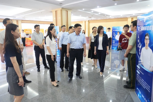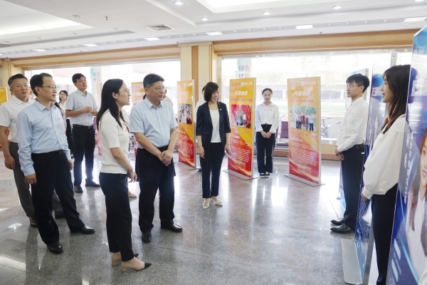 大会开始前,领导嘉宾参观了化学化工学院第三届“榜样的力量”优秀学生事迹展,并与榜样集体代表、榜样团成员进行了亲切地交流 。