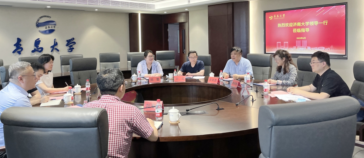 6月13日,黄加栋副校长,科技处 科技成果转化办公室相关人员到访青岛大学。青岛大学李荣贵副校长及科技处相关人员参加了座谈会。李荣贵介绍了青岛大学近年来的科技发展情况和典型经验做法。黄加栋对青岛大学近年来取得的成绩表示祝贺,他简要介绍了sunbet申搏官方网站的情况,表示近年来青岛大学依靠先进的办学理念和发展思路取得了快速的发展,希望通过此次交流座谈,加强两校在科技创新和成果转化方面的合作,互相支持,共同进步。双方围绕服务重大国家战略和区域经济社会高质量发展,在体制机制、科技项目、成果转化、标志性科技奖励、高层次科技创新平台等方面开展了座谈交流。