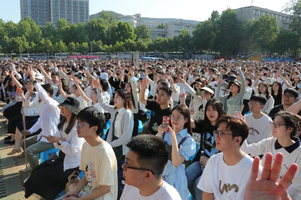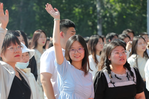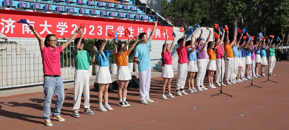 毕业典礼在师生们齐唱《你我同行》的校歌中结束,领导、老师们在毕业歌的旋律中挥手送别2023届毕业生。