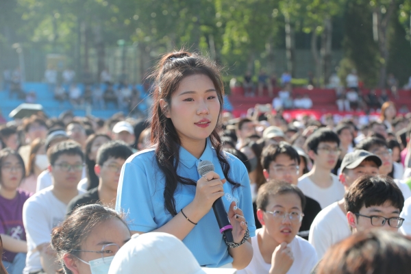 校友代表韩萌深情回忆了自己“无限美好”的大学生活,并给学弟学妹们提出三个建议:第一个建议就是终身学习、终身成长;第二个建议是踏实主动、抓住机遇;第三个建议是不惧困难、积极向上。她说,面对着更加广阔的天地,面对着崭新的未来,希望学弟学妹们永远保持着热情、感恩、积极、担当的心态,用平凡成就伟大,为自己、为家人、为母校、为社会,贡献属于你们自己的力量。