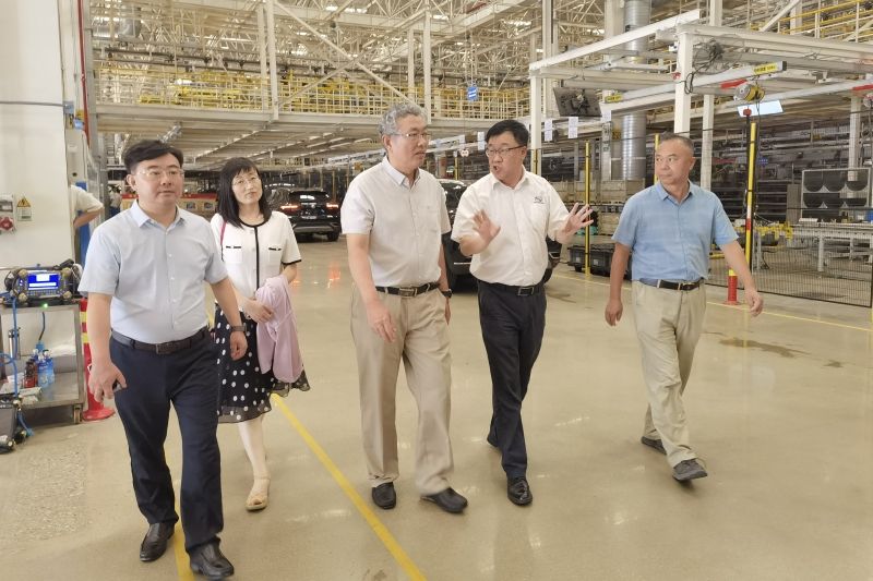 随后,张勇一行到上海通用东岳汽车有限公司进行调研交流。一行人先后参观了上海通用东岳汽车有限公司展厅与汽车组装车间,深入了解企业的发展历程及现状。之后,双方就人才培养、科学研究、岗位需求等方面进行探讨交流。