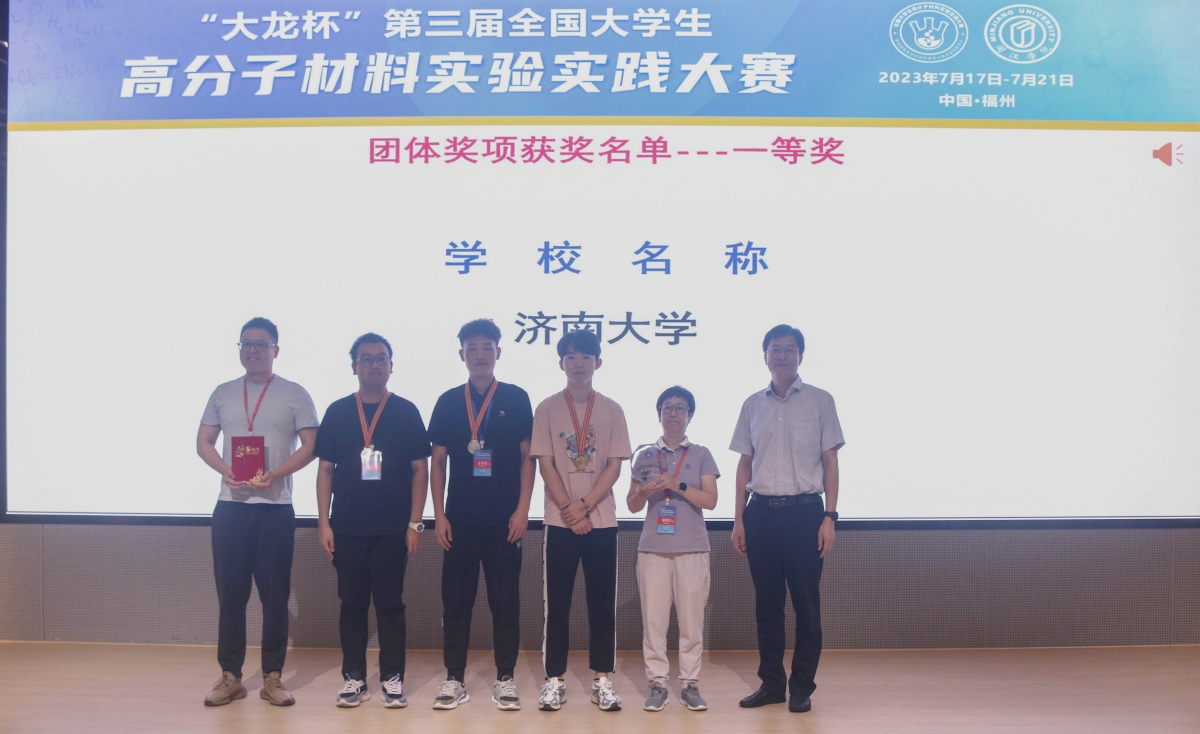 7月17日至21日,由教育部高等学校材料类专业教学指导委员会指导,全国大学生高分子材料实验实践大赛竞赛委员会主办的第三届全国大学生高分子材料实验实践大赛(简称“双实”大赛)在福州落幕。大赛历时5天,吸引了来自59所高校300余名师生参赛。我校化学化工学院高分子材料与工程专业2021级三名学生在决赛中成绩优异,潘俊聪获个人一等奖,张涵淼和王世乾获个人二等奖;我校以总分第一名成绩获团体一等奖(唯一),学校获奖成绩取得新突破。