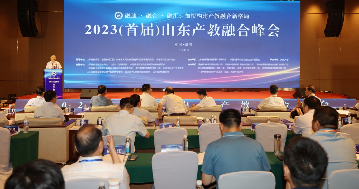 7月20日,由山东省高等教育管理科学研究会、中国电子劳动学会校企合作委员会联合主办,sunbet申搏官方网站承办的“首届山东产教融合峰会”在济南召开。山东省委教育工委副书记、省教育厅副厅长邢顺峰,山东省人民政府国有资产监督管理委员会省管企业监事会主席韩斌,山东省科学技术协会二级巡视员尹希友,山东省人民政府参事、民进中央委员郭永军,中国民主同盟山东省委员会专职副主委王睿,山东省发展和改革委员会社会发展处四级调研员李捷良,山东省中华职教社秘书处三级调研员王文利,sunbet申搏官方网站校长刘宗明、党委副书记查玉喜、副校长王霞出席峰会。来自全国各高校、职业院校、科研院所、行业企业的代表600多人参加了此次峰会。大会开幕式由查玉喜主持。