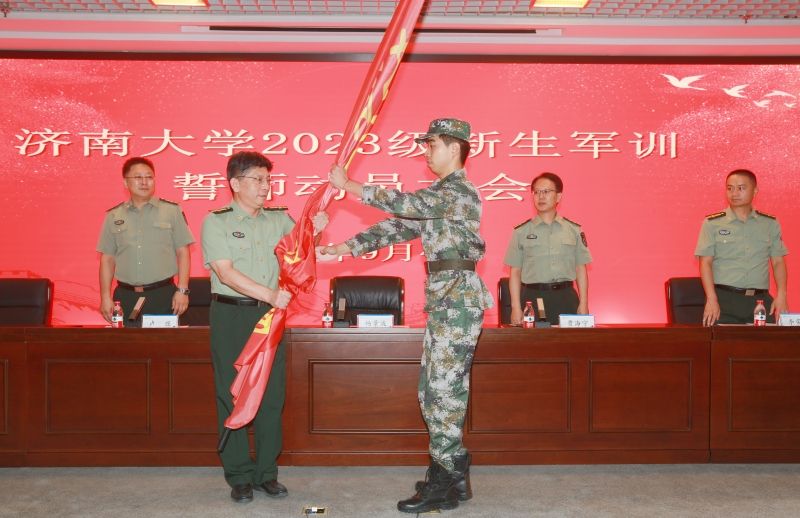 杨景波向军训师授旗并代表学校党委向参加此次军训工作的各部门领导、各学院副书记、军训教导大队的军训教官、军事理论课教师、跟训辅导员以及其他服务保障部门表示衷心的感谢和亲切的问候。杨景波强调,军训是大学生国防教育的核心组成部分,承担了国家法律赋予的重要使命。通过军训,引导学生传承历史文化,提高政治觉悟,强化国防意识,激发爱国情感;集体训练培养集体主义观念,强化纪律观念,增强勇气和坚毅意志;教授基本国防军事知识,传承先辈的奋斗精神,激发新时代的奋发图强精神,塑造有为的新青年。