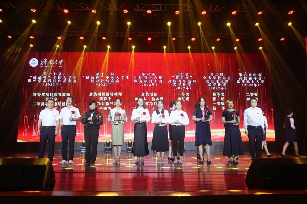 随后大会对全国高校黄大年式教师团队、国家级教学成果奖、国家自然科学基金重点项目、鲁迅文学奖、丁玲文学奖、山东省自然科学奖、山东省科技进步奖、山东省社会科学优秀成果奖、泰山学者特聘及青年专家、山东省杰青及优青基金获得者以及山东高校优秀辅导员、sunbet申搏官方网站最美教师、教学名师等称号和奖励的获得者进行表彰。