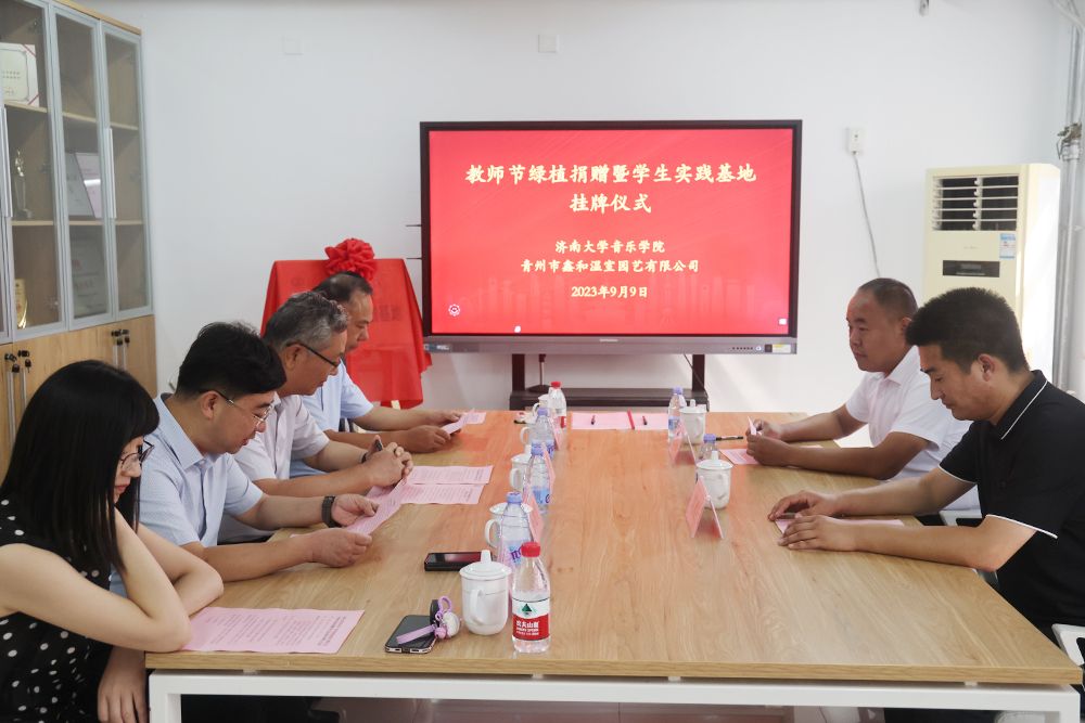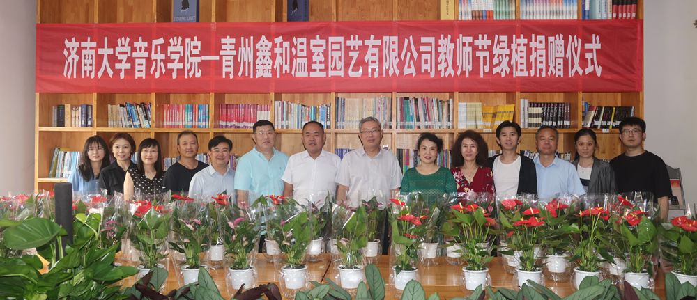 9月9日,音乐学院与青州鑫和温室园艺有限公司举行教师节绿植捐赠暨大学生实践基地挂牌仪式。sunbet申搏官方网站党委常委、副校长张勇,青州鑫和温室园艺有限公司董事长赵远涛、青州鑫和温室园艺有限公司经理刘建行、sunbet申搏官方网站音乐学院班子全体成员及部分教师代表参加此次活动。活动由音乐学院党委书记孙翔玲主持。