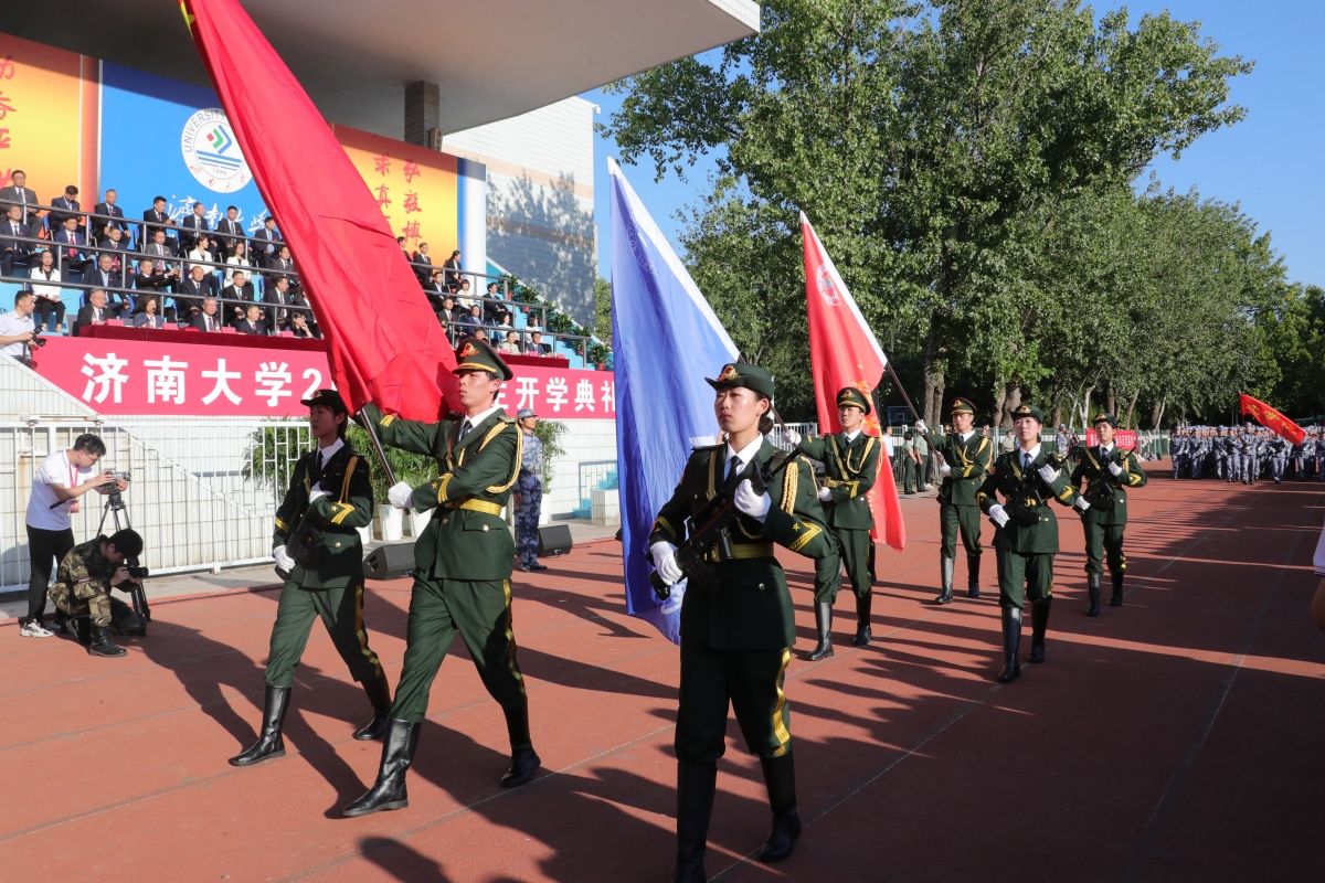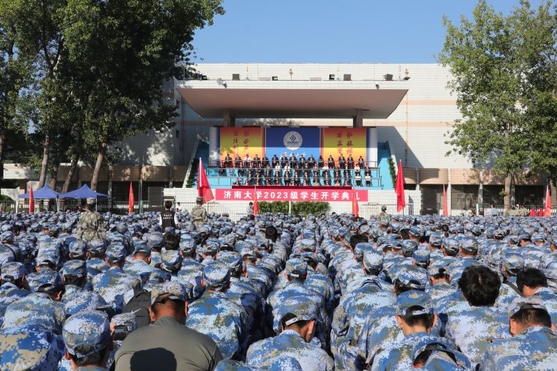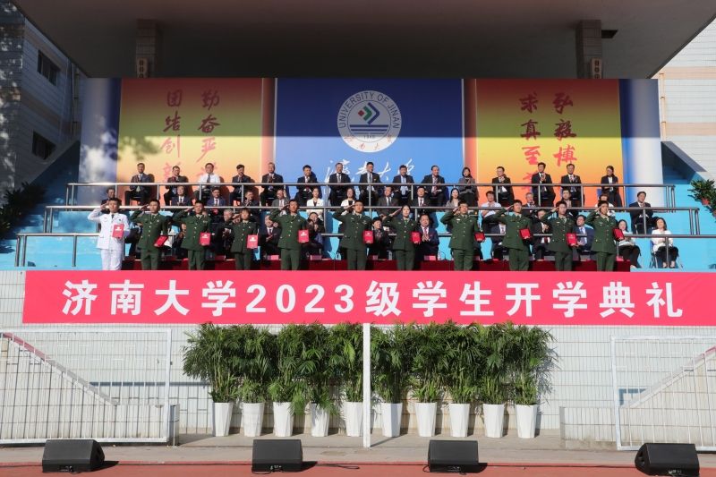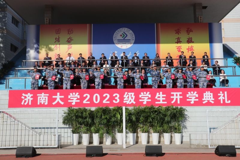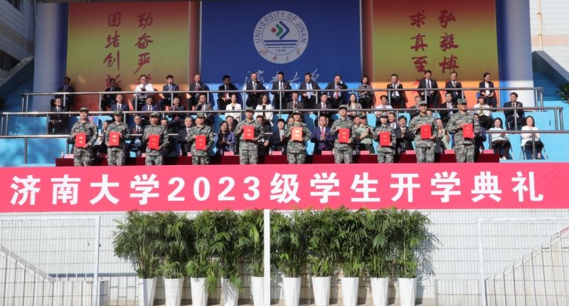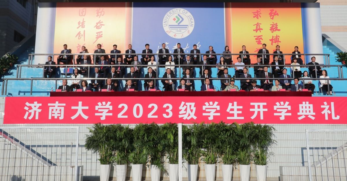 学校领导刘春华、刘宗明、查玉喜、杨景波、张勇、商华、王霞、李强、黄加栋,市中区武装部领导王朝建,校友代表姚金平在主席台前排就坐。在主席台就坐的还有教师代表,各学院党委书记、院长,学校有关职能部门负责同志。参加开学典礼的还有2023级新生,各学院党委副书记,学办主任、团委书记,新生辅导员、班主任,在校生代表。开学典礼由校党委副书记杨景波主持。