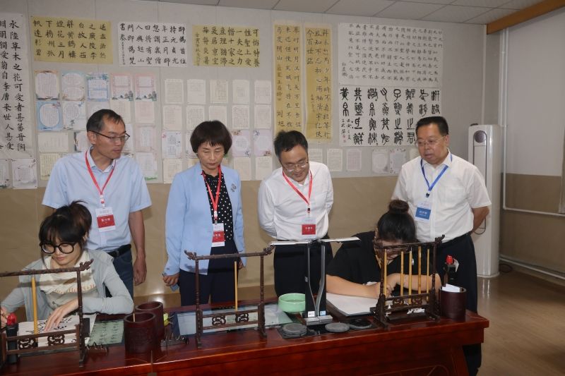 进校考查期间,专家组依据师范类专业认证标准,对8个一级指标、39个二级指标进行了考查工作。召开了预备会、专家见面会、碰头会、认证结论评议会等工作会议5次,听课看课20节次,测评师范生技能展示学生20人次,调阅了毕业论文100份,教育实习材料100份,抽查了25门课程的试卷和考核材料,深度访谈了教学副校长、学院负责人、职能部门负责人、专业负责人等46人次,召开了教师、在校生、毕业生、用人单位、实践基地负责人等各类座谈会10次,共计98人。实地考查了智慧教室、书法教室、图书馆、教师发展中心、心理咨询工作室、融合教育中心,参观了艺美空间师范专业师生书法作品展等。专家组还实地走访了济南第九中学、市中区泉海学校2个教育实践基地,同时专家组认真查阅了专业所提供的所有的支撑佐证材料,尽可能全面获取专业的教育教学信息。