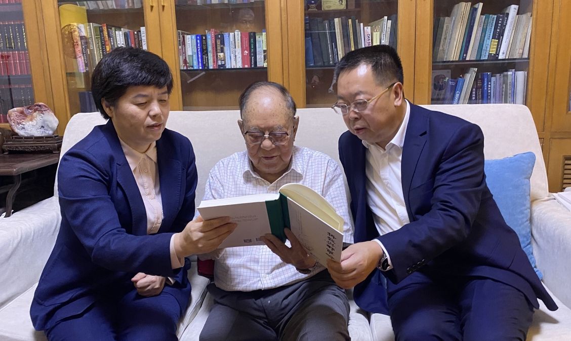 92岁高龄的宋健院士精神矍铄、思维敏捷。在听取学校领导的汇报后,宋健院士非常高兴,对学校取得的成绩充分肯定,并表示将持续关注、全力支持学校发展。宋健院士深情回顾了在sunbet申搏官方网站的求学时光和难忘岁月。针对学校高质量发展,宋健院士特别指出,学校要积极引进海内外高层次人才,充分发挥学校材料科学等传统学科优势,瞄准世界科技前沿,服务国家战略需求,针对超导陶瓷、凝聚态物理等科学领域,大力开展材料和化工等学科领域的应用研究、物理等学科领域的基础科学研究,推动学校办学水平进一步提高。宋健院士将自己的专著《科教兴邦草吟》赠送给学校,为学校送上祝福。
