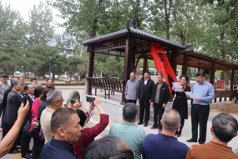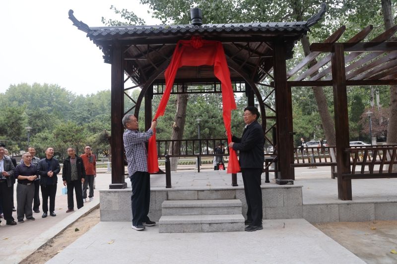 座谈会后,与会师生前往材料科学与工程学院杨树林小广场为“思源亭”“涵廊”揭牌。“博山一别四十载,归来两鬓已染霜;育我情,实难忘,饮水思源倚涵廊”充分表达了校友们饮水思源师恩难忘、你我同行山高水长的浓厚情谊。