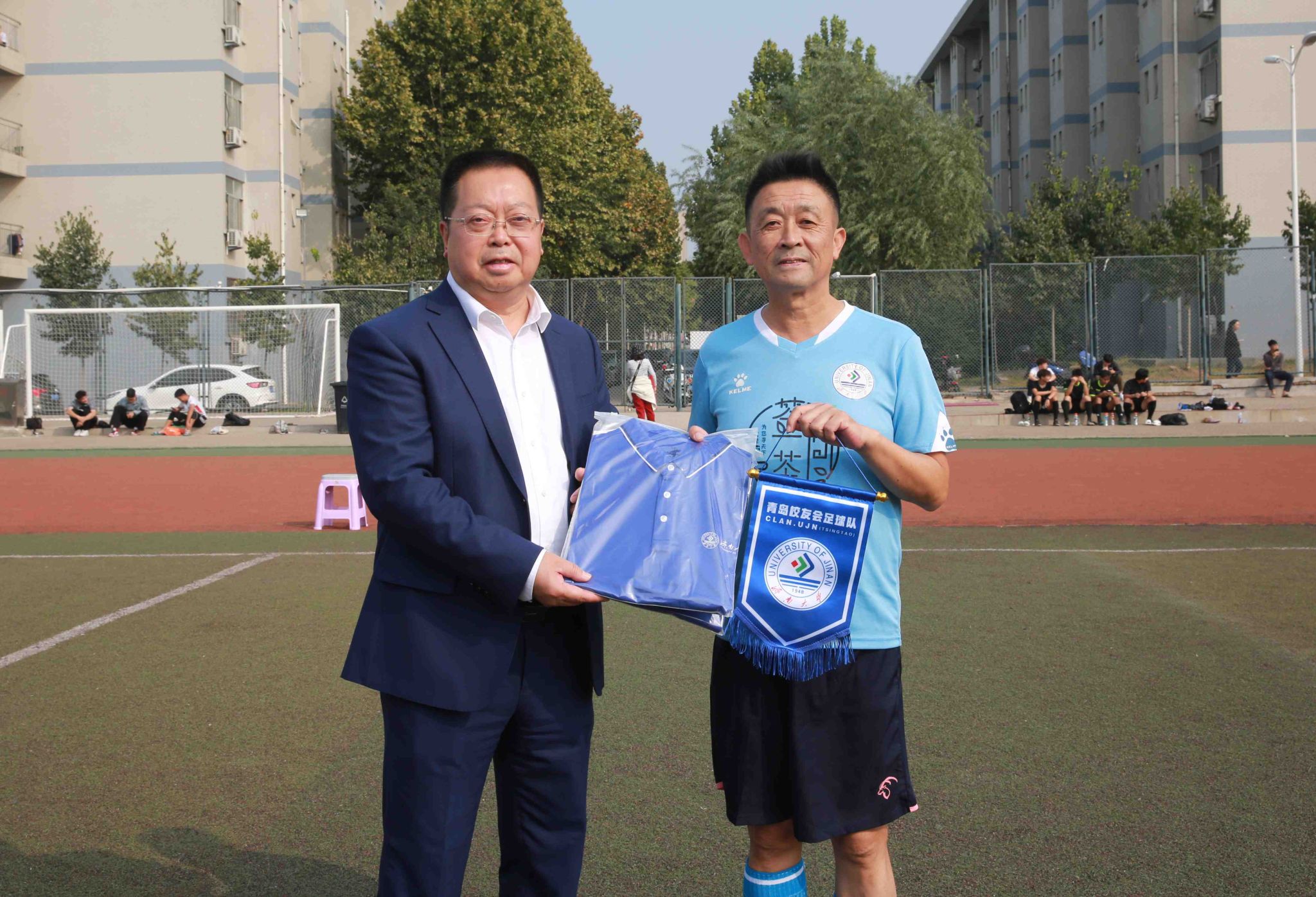 10月14日,sunbet申搏官方网站校友足球友谊赛在主校区南苑足球场举行。学校党委副书记、校长刘宗明,党委常委、副校长黄加栋,党委常委、宣传部部长贾海宁出席活动,合作发展处、工会、材料科学与工程学院等相关单位负责人,青岛校友足球队、济南校友足球队、学校教工足球队、学生足球队和部分师生参加活动。