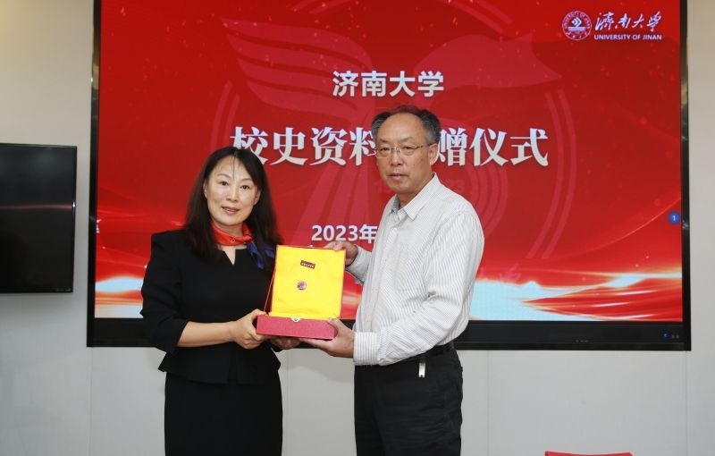 仪式上,董洁代表学校接受了孙黛老师、毕叶校友捐赠的校史资料,张勇为其颁发捐赠证书并赠送纪念品。