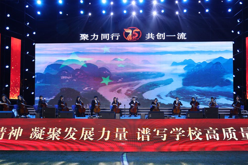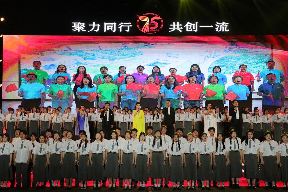 歌曲《领航》、器乐合奏《我和我的祖国》表达了广大师生对党和国家深深的爱;由校友、新生、学校幼儿园、附属小学、附属中学学生和老教师们带来的歌曲联唱《光阴的故事》《同桌的你》《明天会更好》《最美的太阳》《你我同行》,带领观众在时光中穿梭,感悟美好青春,积聚奋发力量;合唱《如愿》唱出了对学校发展的礼赞与祝福。