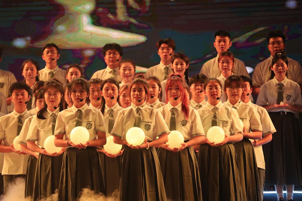 舞蹈《天浴》,绮袖翩翩,涤荡心灵;合唱《起风了》展现出少年奔赴前程的心路历程;歌曲《不忘初心》曲调悠扬,用歌声向祖国告白。