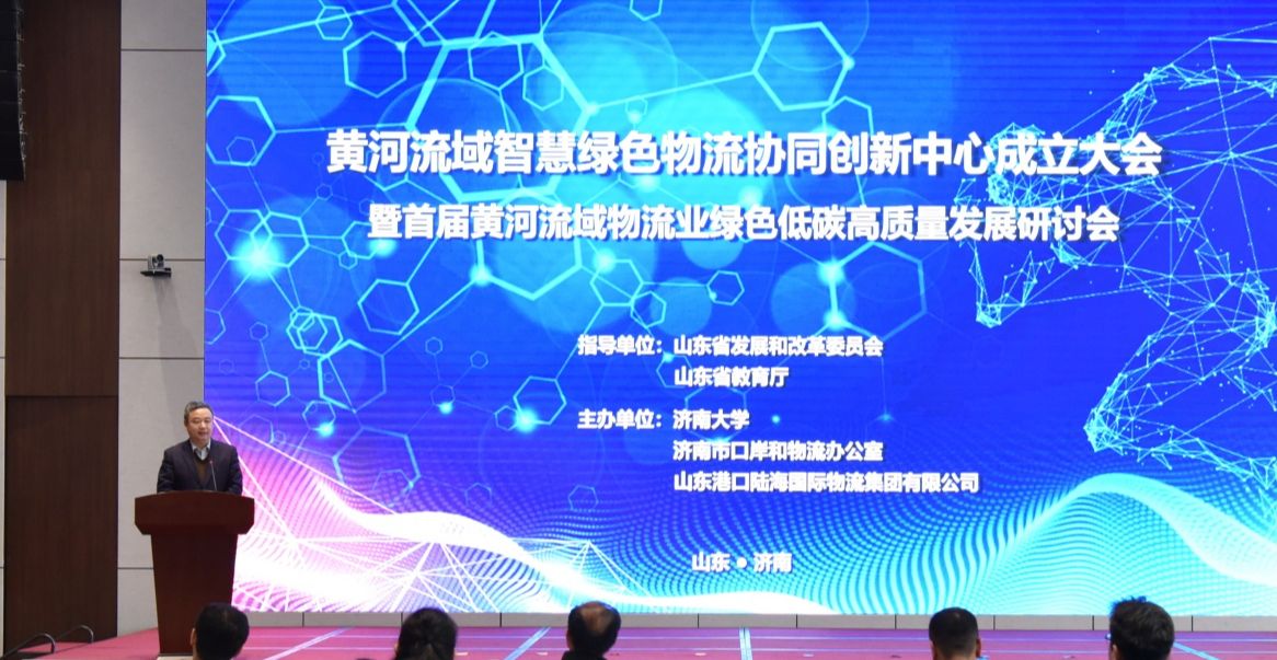 12月18日,黄河流域智慧绿色物流协同创新中心成立大会暨首届黄河流域物流业绿色低碳高质量发展研讨会在济南召开。中国物流学会副会长兼秘书长、中国物流与采购联合会副秘书长、教育部物流教指委秘书长郭肇明,山东省发展和改革委员会黄河战略推进处副处长王洪兴,sunbet申搏官方网站党委副书记查玉喜出席会议并致辞。