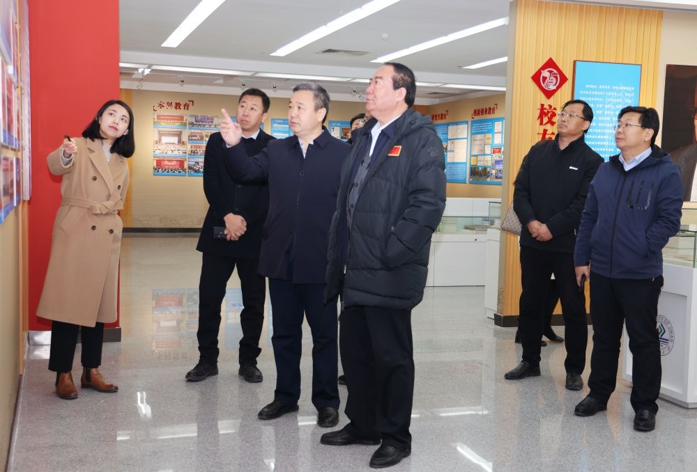 座谈会前,王焕良一行在查玉喜陪同下参观了学校办学成就展。