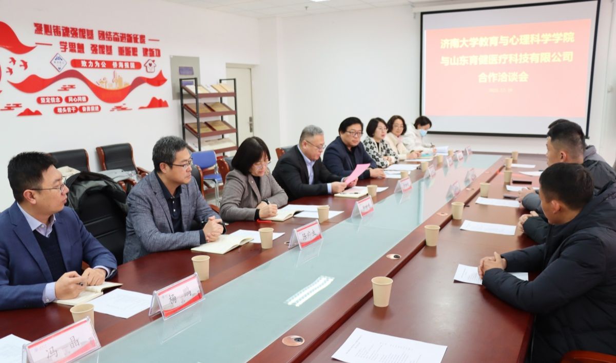 黄加栋对邹雪茜和杜华民一行表示欢迎,感谢山东育健医疗科技有限公司的爱心善举,期待教育与心理科学学院与山东育健医疗科技有限公司联合成立研究院后能够开展更深层次的交流与合作,并表示sunbet申搏官方网站一定会把这份爱心转化为发展的动力,用优异的育人成果来回馈社会。邹雪茜感谢教育与心理科学学院给予山东育健医疗科技有限公司此次合作机会,公司后续将与学院在成果转化、人才培养、社会服务等方面开展合作,全力支持学院发展。