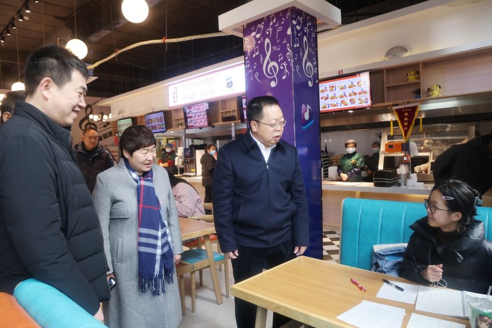 “还有几门课要考?”“大几了?”“哪个学院的?”“考的哪个学校的研究生?”在食堂自习区,刘校长仔细询问正在学习的学子们,并鼓励同学们期末考试考出好成绩。食堂不仅为同学们带来了温暖温馨的备考环境,还有免费饮用热水、粥、姜糖水、用电插口等,从书中走出就可以直奔心仪的“饭菜窗口”,体验心头与胃口的双重满足,同学们反响良好,纷纷点赞。