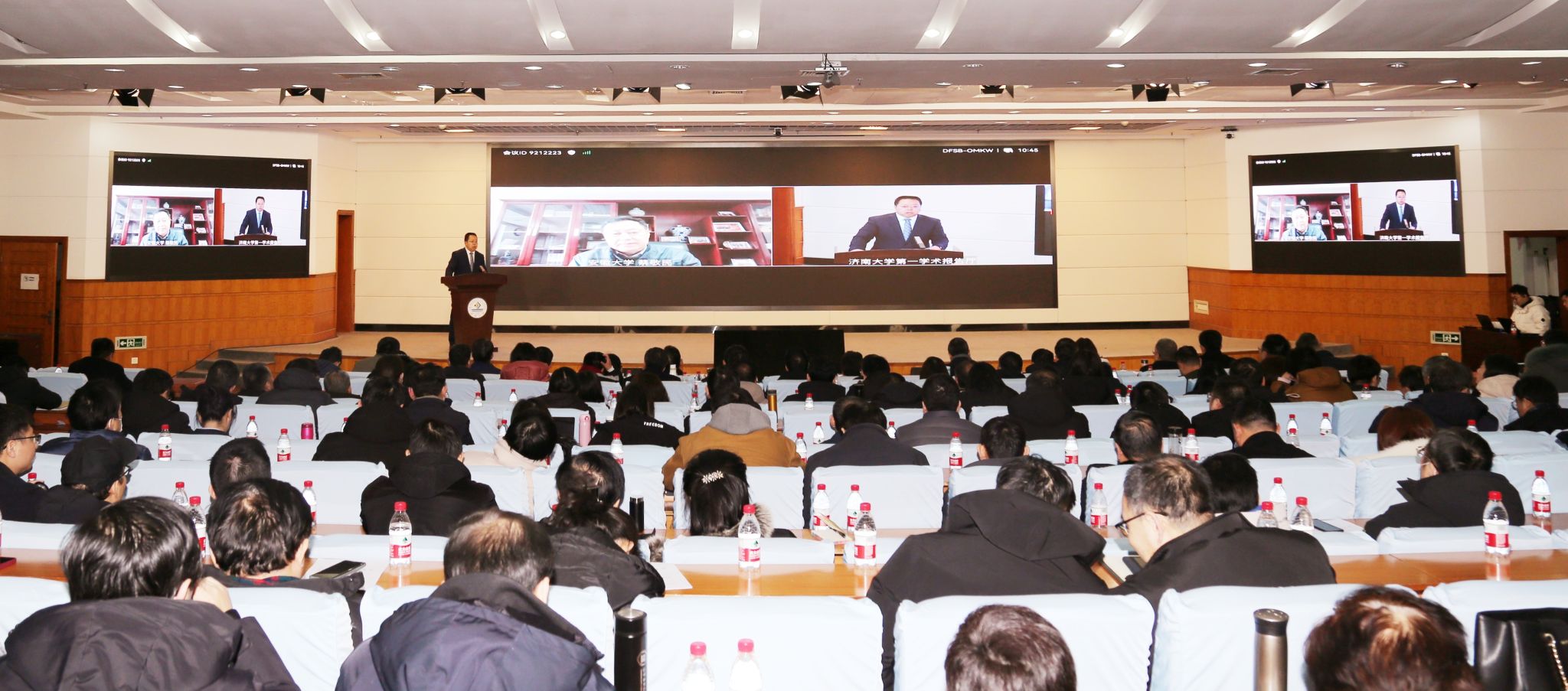 蔡敬民教授通过线上视频方式作了题为《地方高水平大学高质量发展的实践与思考》的辅导报告。蔡敬民围绕地方高水平大学高质量发展主题,以安徽大学改革发展的举措成效为实例,从服务地方、突破稳态、融合发展、推进国际化四个角度系统全面地阐述了对于地方高水平大学高质量发展的思考。报告内涵丰富、深入浅出,紧密结合地方高水平大学建设实际,分析精准、数据详实、重点突出,为推动我校的高质量发展提供了有益借鉴。