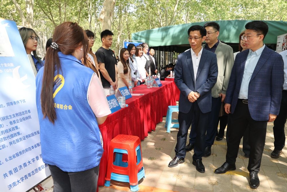 为深入学习贯彻党的二十大精神,落实党中央、国务院“稳就业”“保就业”决策部署,抢抓毕业生求职关键期,为广大毕业生提供广阔的就业平台,有效帮助其更高质量就业,文学院、数学科学学院、物理科学与技术学院、外国语学院于4月18日上午联合举办“文物双全,数语未来”2024年春季专场招聘会。学校党委常委、副校长李强到场与参会单位和学生交流。党委学生工作部(处)、团委 创新创业学院、文学院、数学科学学院、物理科学与技术学院、外国语学院等相关负责人参加活动。