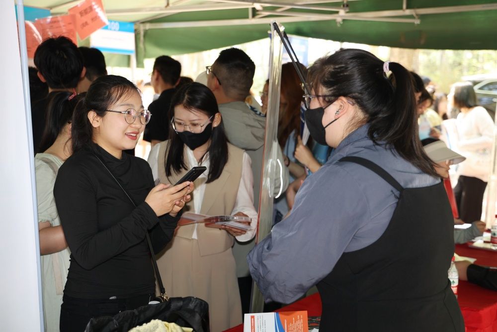 双选会现场环境布置井然有序,主办单位按照行业分类设置展位,来自全国各地的优质企业有序入场。参会企业提供了有竞争力的薪酬体系,灵活的职业晋升通道和人性化的管理氛围吸引了不少优秀的应届毕业生的关注和询问。毕业生们按照自身需求、结合自身发展目标筛选岗位,积极与招聘单位展开深入交流,向心仪的单位投递简历。