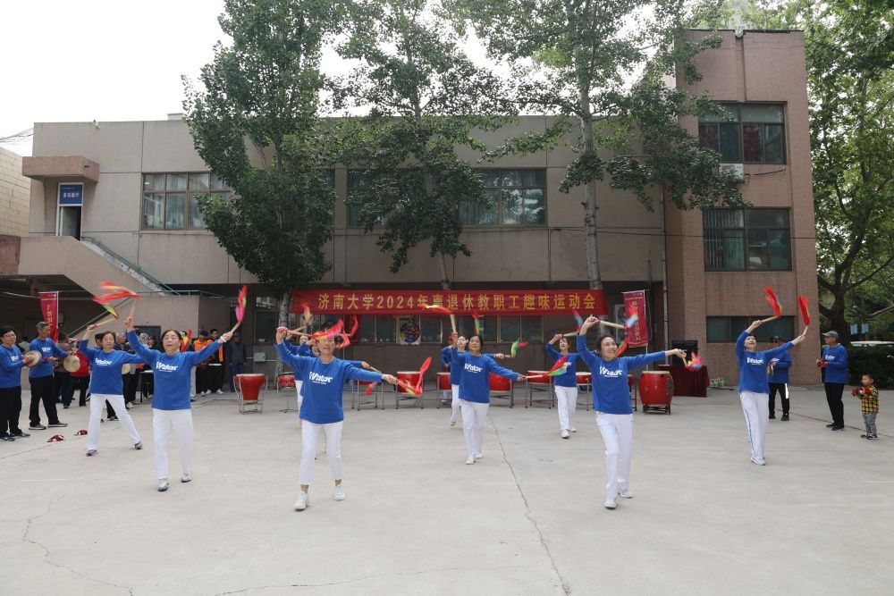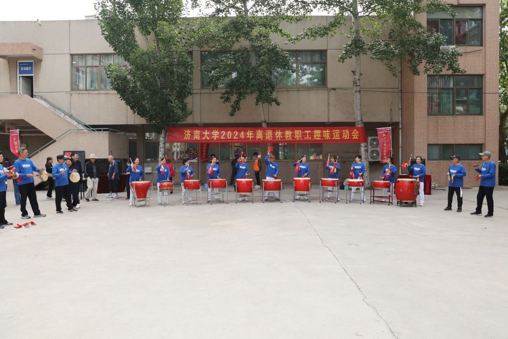 比赛开始之前,我校离退休工作处锣鼓队为大家带来一段精彩的开场表演。随着欢快的节奏和潇洒的秧歌舞步,现场响起热烈的掌声和欢呼声。赛场内彩旗飘扬热闹非凡,许久未见的老朋友、老同事久别重逢,相互问候交流。大家欢聚一堂,其乐融融。