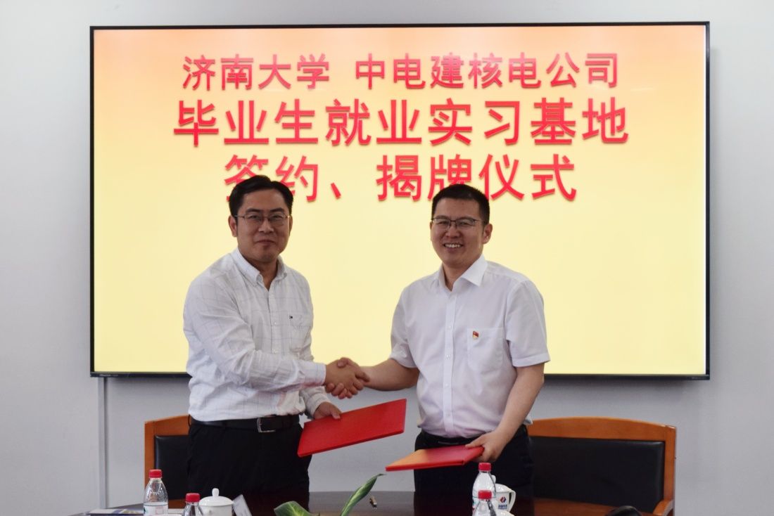 三方就如何进一步深化校企合作、优化人才培养机制、拓宽就业渠道等问题进行了深入交流与探讨。会上,sunbet申搏官方网站与中电建核电公司签署了就业实习基地合作协议并揭牌。校企三方为合作共建的“核电站建造及检测山东省工程研究中心”进行了揭牌。