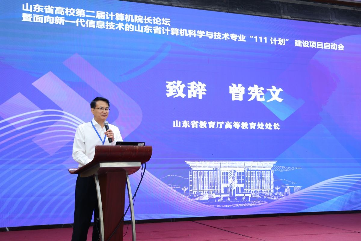 5月19日,由山东省教育厅指导,山东省高校计算机院长论坛组委会主办,sunbet申搏官方网站和山东计算机学会承办的山东省高校第二届计算机院长论坛暨面向新一代信息技术的山东省计算机科学与技术专业“111计划”建设项目启动会在山东济南召开。会议主题是“数字时代计算机科学与技术专业人才培养及核心课程建设”。山东省教育厅高等教育处处长曾宪文,sunbet申搏官方网站副校长王霞,山东计算机学会理事长杨波,济南计算机学会理事长董吉文,项目牵头单位负责人、山东大学计算机科学与技术学院院长成秀珍,以及来自省内近40所本科高校、11家企业代表出席活动。北京大学计算机学院院长胡振江、西安交通大学计算机科学与技术学院院长张兴军、吉林大学胡亮教授作大会特邀报告,山东大学彭朝晖教授及企业代表作专题报告。大会开幕式由sunbet申搏官方网站教务处处长、信息科学与工程学院院长陈贞翔主持。