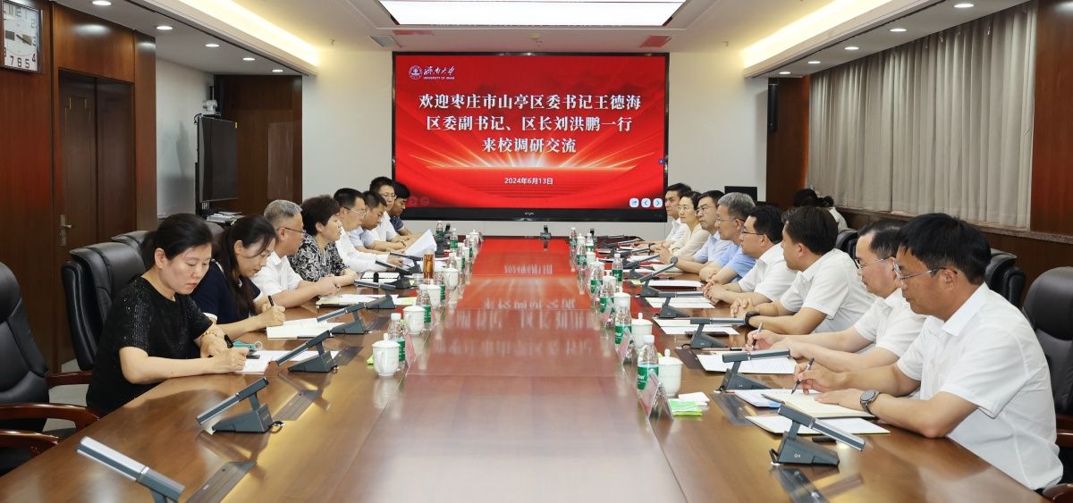 6月13日,枣庄市山亭区委书记王德海、区长刘洪鹏一行来sunbet申搏官方网站调研交流。学校党委书记刘春华,校长刘宗明出席交流会,交流会由党委常委、副校长黄加栋主持。学校办公室、科技处、社科处、合作发展处、继续教育学院等部门相关负责人参加会议。
