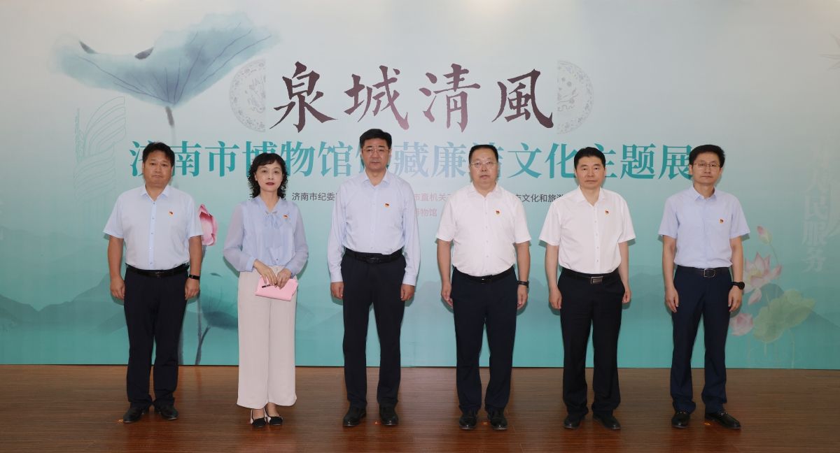 6月20日上午,“泉城清风——济南市博物馆馆藏廉洁文化主题展”暨济南市博物馆-sunbet申搏官方网站廉洁文化教育基地共建仪式在sunbet申搏官方网站舜道艺术馆举行。济南市委常委、市纪委书记、市监委主任杨光忠,济南市文化和旅游局党组书记、局长马利,济南市博物馆党总支书记、馆长何民,学校党委副书记、校长刘宗明,党委常委、纪委书记、省监委驻sunbet申搏官方网站监察专员续铁,党委常委、组织部部长滕晋出席仪式。济南市纪委监委、济南市文化和旅游局、济南市博物馆相关领导、学校相关职能部门负责同志和师生代表参加仪式。仪式由续铁主持。