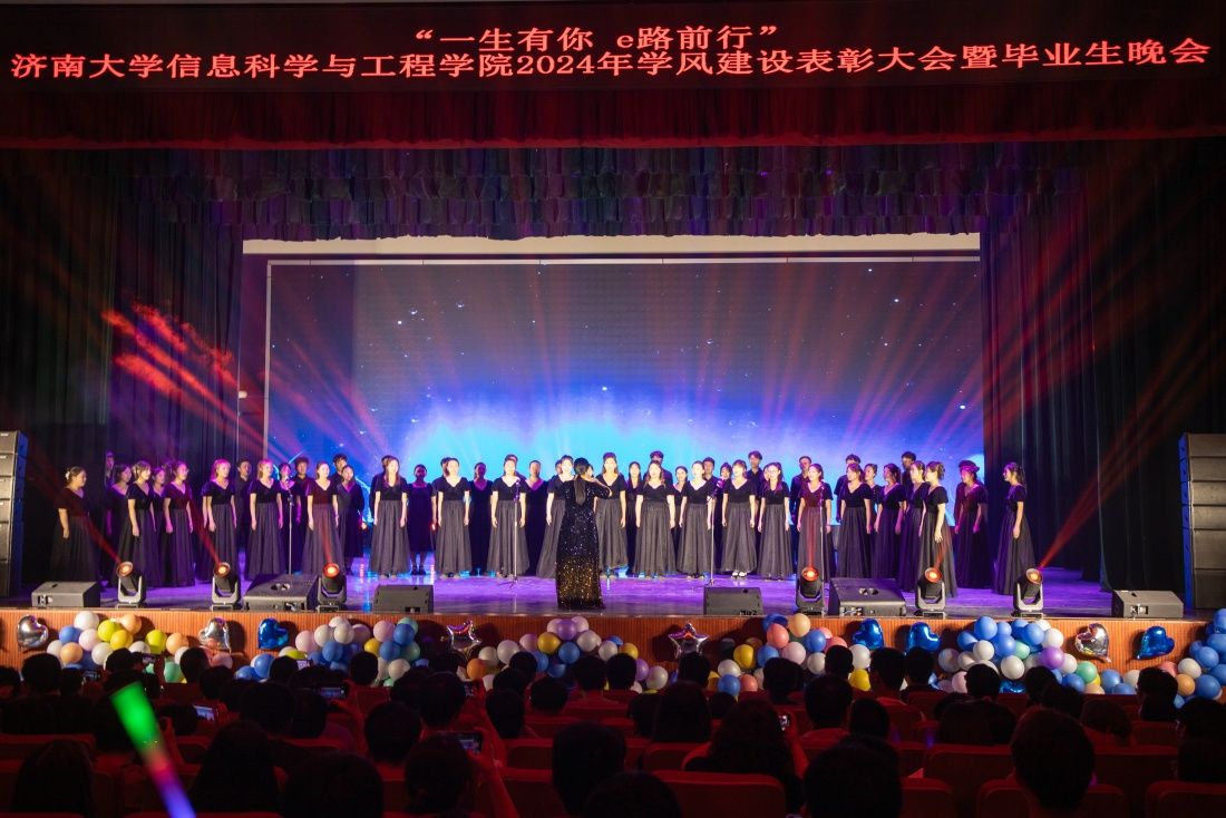 乘风而来,踏风而去,骄阳初升,岁物丰成。此次学风建设表彰大会暨毕业生晚会的成功举办,不仅展现了信息科学与工程学院在教育教学和人才培养方面的成果,体现学院对学生全面发展的高度重视,也展现了老师和毕业生共同回忆过去四年点滴经历、一起展望未来的温情画面。青年的肩上担的是清风明月,青年的未来是一片星河灿烂,信息学院2024届毕业生们即将奔赴远大前程,愿大家穿花寻路,披荆斩棘,前程似锦,一路繁花!
