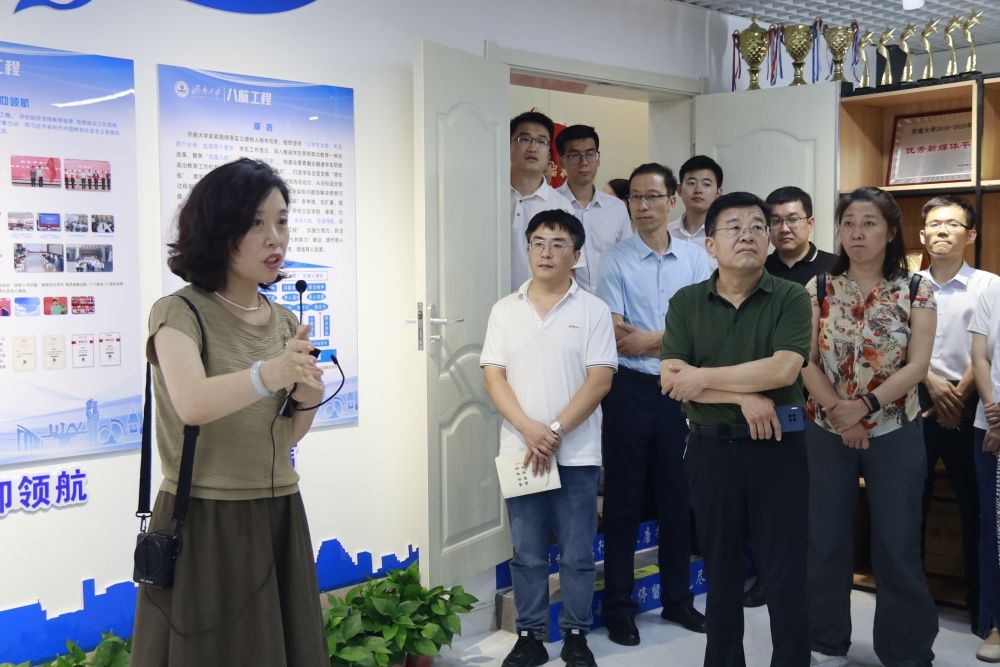 参观交流环节,辅导员们考察了警务室、“石榴籽”工作室、学生思政育人成果展、学工在线(易班)工作站、“一站式”学生服务中心、人民武装部、学生创新创业服务中心等。