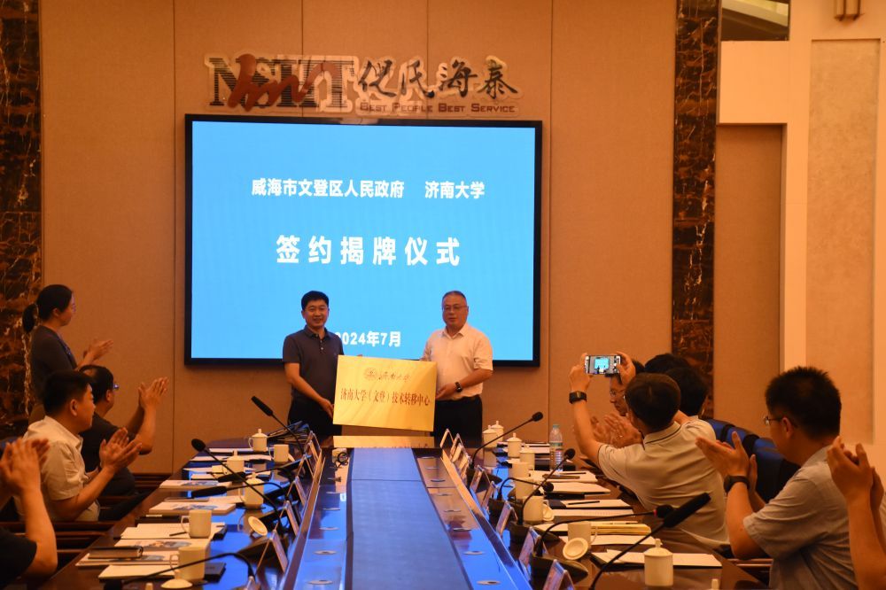 座谈会上,合作发展处处长刘振与顾甜甜签署了文登区与sunbet申搏官方网站合作协议,黄加栋与刘军共同为“sunbet申搏官方网站(文登)技术转移中心”揭牌。