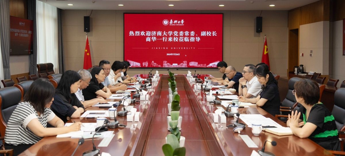 商华介绍了学校发展总体情况,对嘉兴大学近几年的办学成绩和快速发展表示赞赏。希望通过此次调研交流,加深对嘉兴大学“红船精神”育人、大统战工作格局构建、党外知识分子思想引领等方面的了解,同时希望两校进一步加强交流交往,互相学习、共同进步。