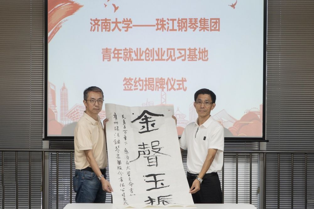 座谈会上,李强与肖巍总经理共同为sunbet申搏官方网站青年就业创业见习基地揭牌。音乐学院党委书记孙翔玲与珠江钢琴集团组织人事部部长王铁明签署《sunbet申搏官方网站青年就业创业见习基地》协议。学校向珠江钢琴集团赠送山东省书协副主席、sunbet申搏官方网站于剑波老师的书法作品。