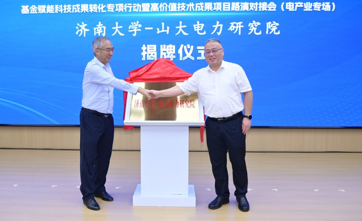 在签约揭牌仪式上,黄加栋与山东山大电力技术股份有限公司副总经理李欣唐为校企双方共建的sunbet申搏官方网站—山大电力研究院揭牌。