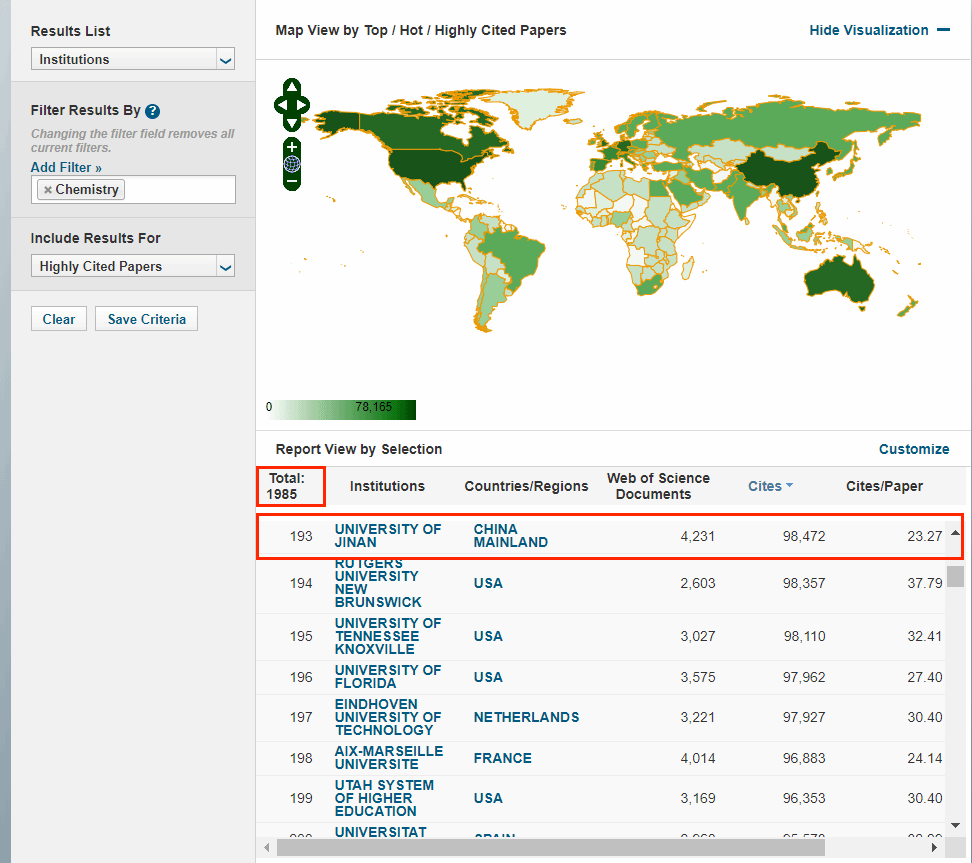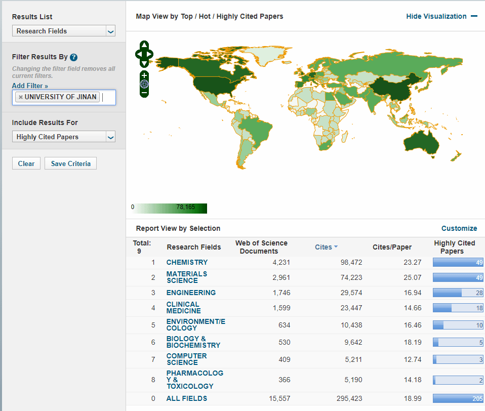 本期数据覆盖的时间段为2014年1月1日-2024年6月30日,化学学科全球共计1985所机构入围ESI全球前1%,门槛值为7910,我校化学学科全球被引排名第193位,共发表高水平论文4231篇,总被引频次98472次,篇均被引频次达23.27。计算机科学学科全球共计807所机构入围ESI全球前1%,门槛值为5106,我校计算机科学学科全球被引排名第795位,共发表高水平论文409篇,总被引频次5211次,篇均被引频次达12.74。