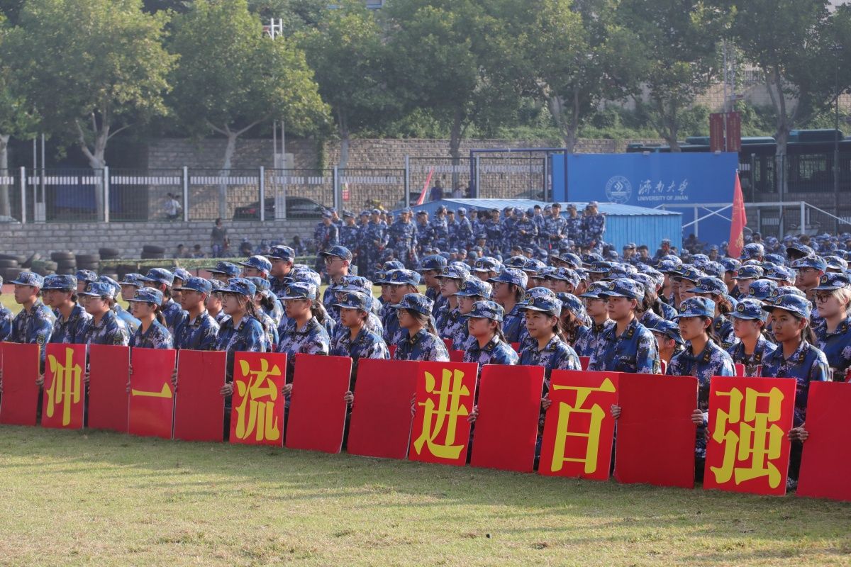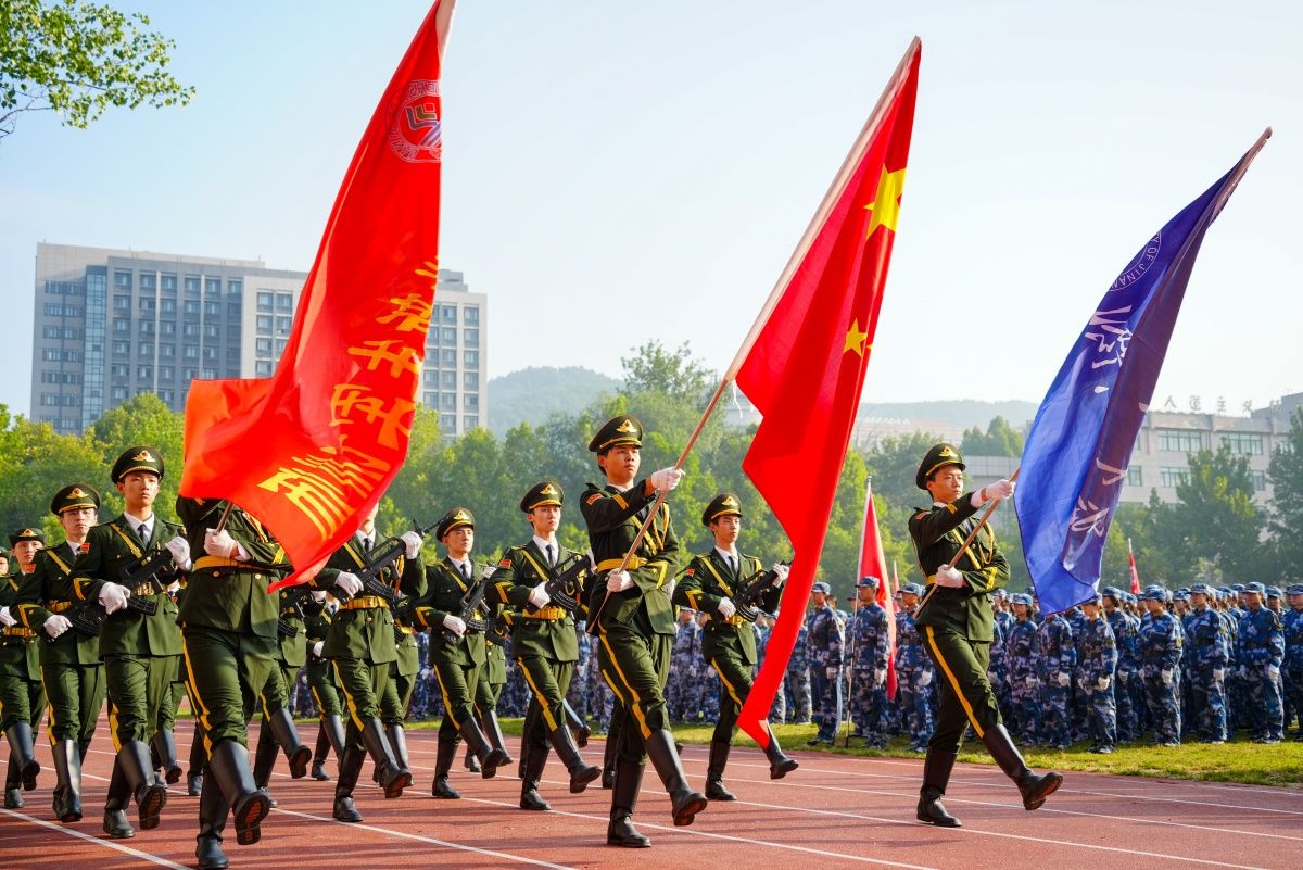 党委常委、副校长王霞宣读军训先进单位、优秀教官和训练标兵名单。信息科学与工程学院、商学院、文化和旅游学院、政法学院、管理科学与工程学院、水利与环境学院、物理科学与技术学院、美术与设计学院、化学化工学院、自动化与电气工程学院、土木建筑学院被评为“新生军训先进单位”,罗占宁等56名学生获“优秀教官”荣誉称号,杜志浩等343名学生获“训练标兵”荣誉称号。与会领导嘉宾为军训获奖单位和个人颁奖。