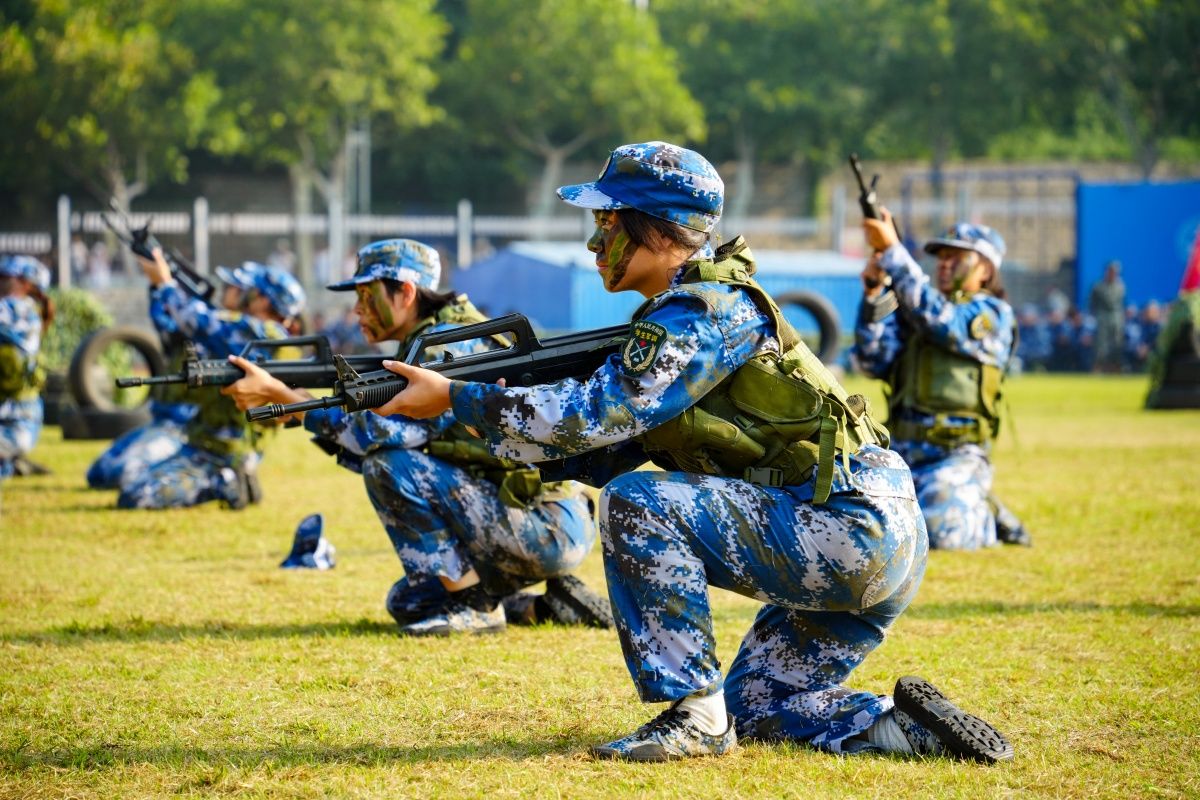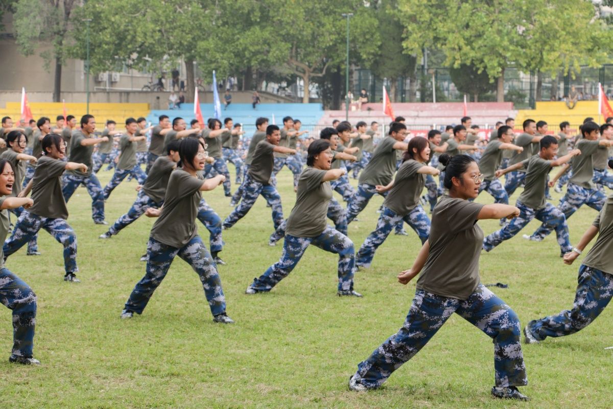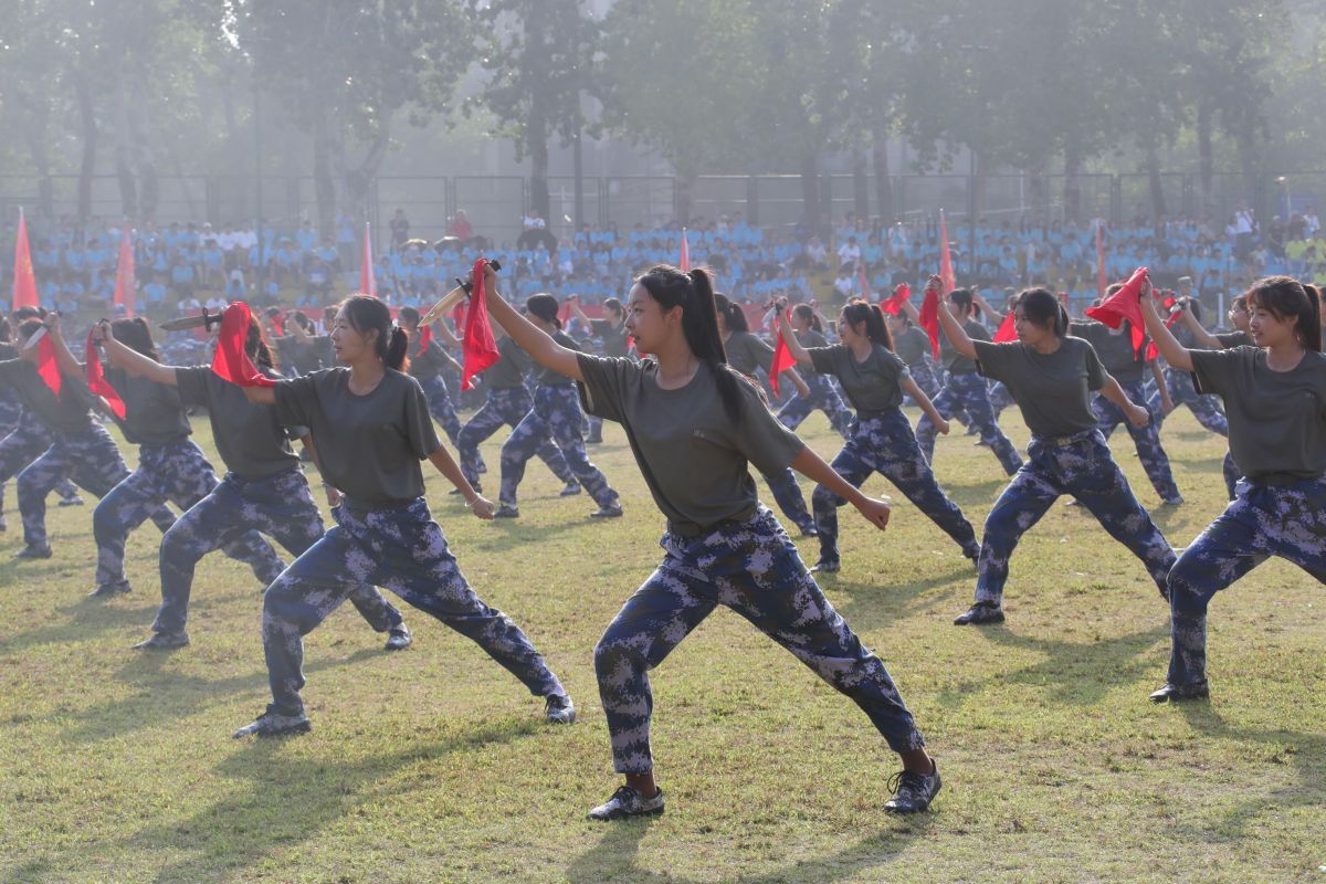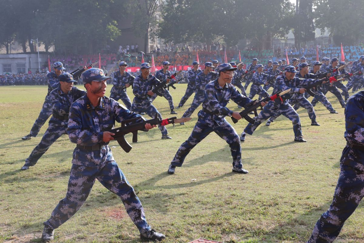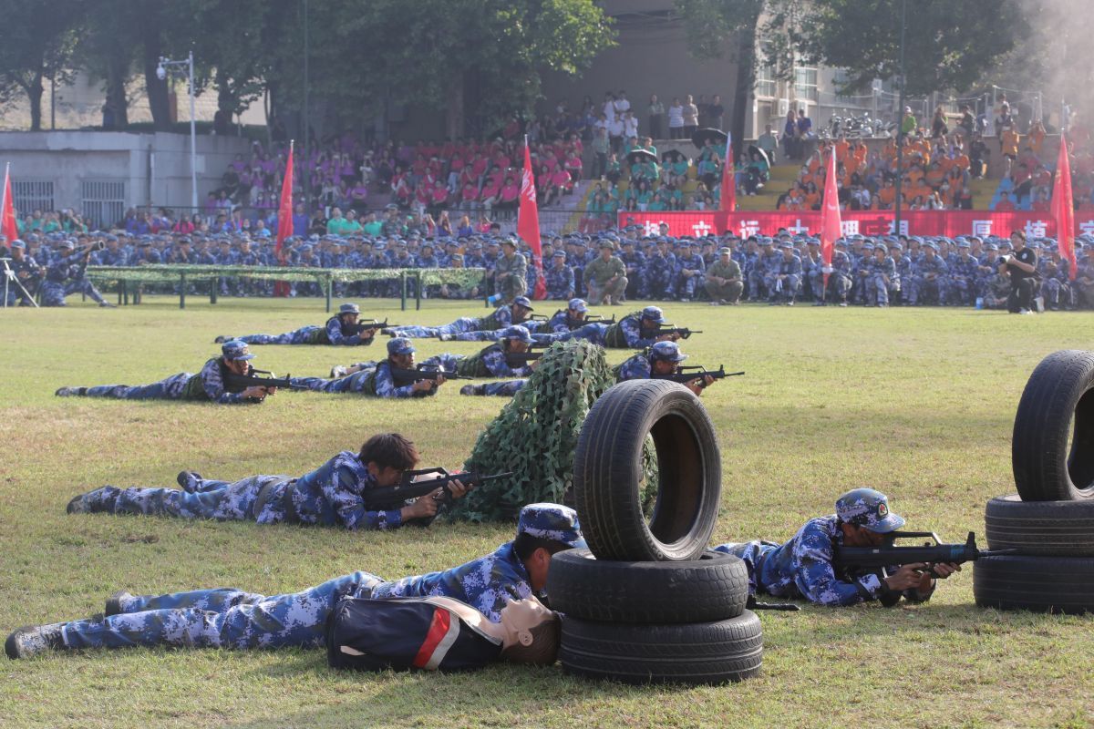 学生们训练有素、果敢勇毅,带来喜迎国庆大型团体操,刚劲有力的刺杀动作、军体拳、女子匕首格斗术、战场战术与救护等项目汇报,展现了昂扬向上的精神风貌和sunbet申搏学子的青春活力,彰显出拼搏奋斗的精神和报效祖国的理想信念。