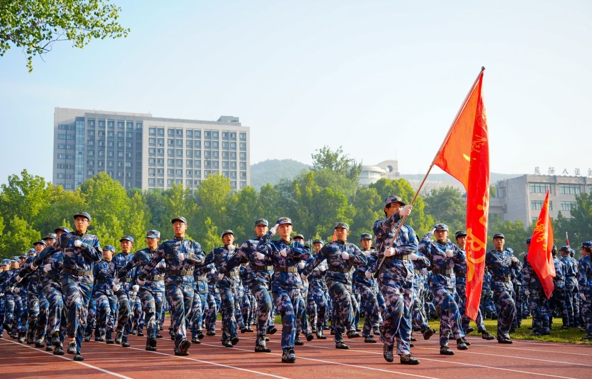 军训科目成果展示正式开始。师生组成23支方队,他们身穿戎装、英姿飒爽,迈着整齐的步伐,喊着铿锵有力的口号,接受领导老师的检阅。