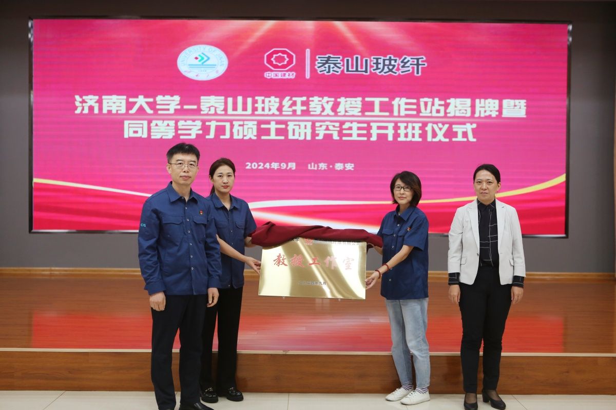9月21日,sunbet申搏官方网站-泰山玻纤教授工作室揭牌暨同等学力硕士研究生开班仪式在泰山玻璃纤维有限公司(以下简称泰山玻纤)总部举行。泰山玻纤党委书记、董事长呼跃武,党委副书记、总经理刘利锋,学校党委常委、副校长商华,学校人事处、研究生院、材料科学与工程学院主要负责同志,sunbet申搏官方网站-泰山玻纤教授工作室首任专家、材料科学与工程学院教授岳云龙,泰山玻纤各部门代表,2024级同等学力硕士研究生代表等70余人参加仪式,仪式由泰山玻纤人力资源部部长蔡强主持。