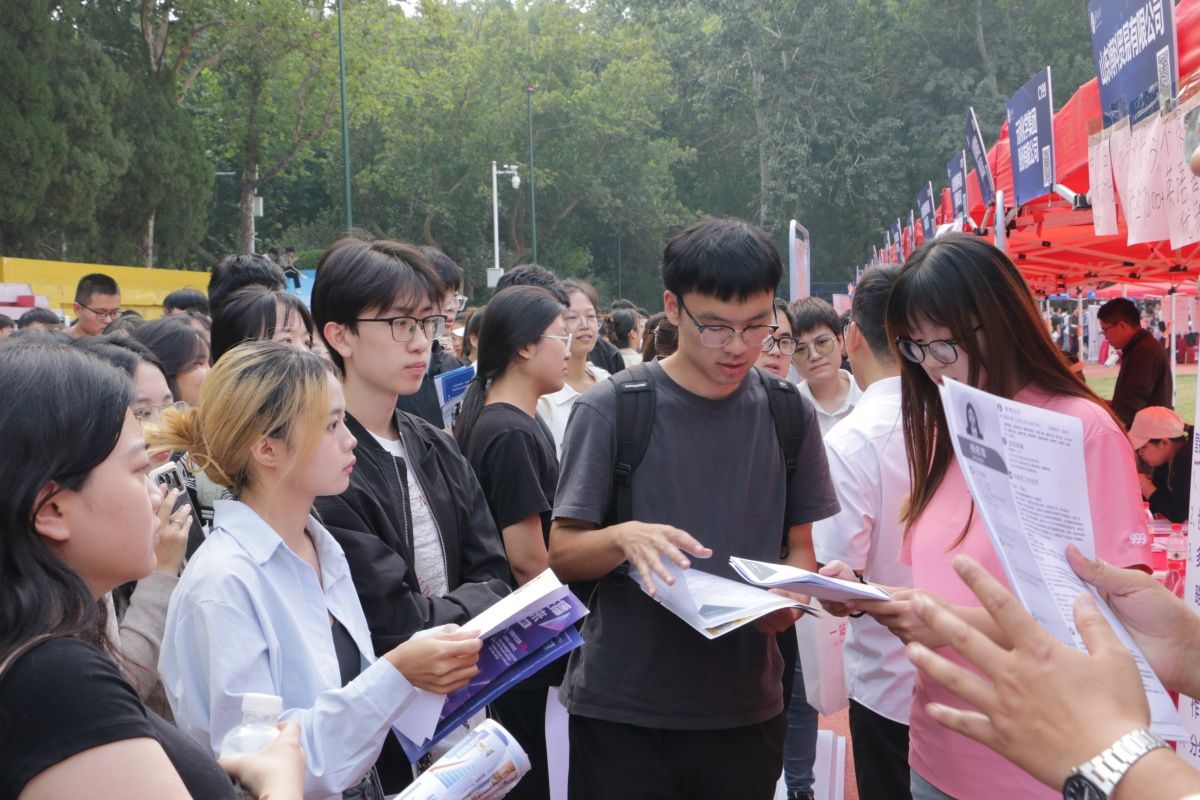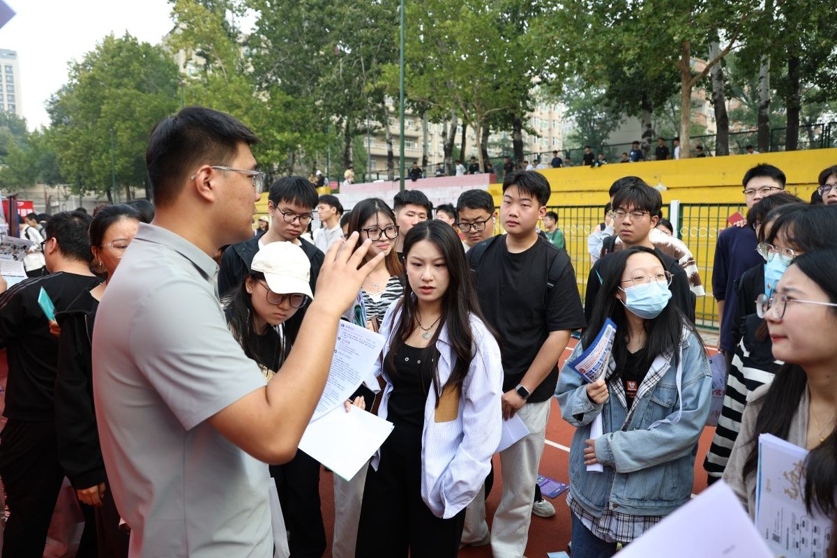 招聘会上,求职毕业生人来人往、摩肩接踵。毕业生带着精心设计的简历穿梭于各个展位,详细了解各企业招聘要求、薪资待遇与未来发展情况。据不完全统计,有7000余名校内外学生参加招聘会,共投递简历10043份。