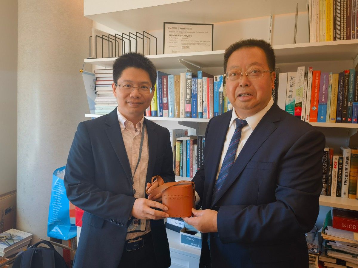 在悉尼科技大学访问期间,代表团与澳大利亚与新西兰金融与会计协会董事、悉尼科技大学商学院单耀文教授进行了座谈交流。双方就共同开展科研合作、创新项目申报等事宜进行深入探讨,达成初步合作共识,并表示将尽快落实合作细节,推动两校之间开展实质性合作。