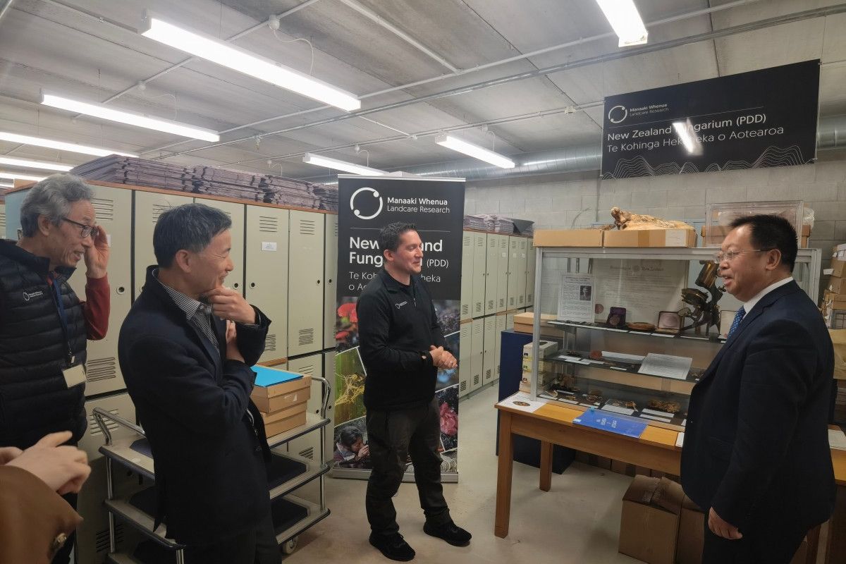 在访问新西兰皇家研究院土地保护研究所时,新西兰皇家学会院士、土地保护研究所所长张智强教授会见代表团一行。双方就研究生联合培养、青年教师交流、科研合作等进行沟通交流。会见期间,刘宗明为张智强教授颁发sunbet申搏官方网站客座教授聘书。会后,在张智强教授陪同下,代表团参观考察了土地保护研究所生物标本库及实验室。