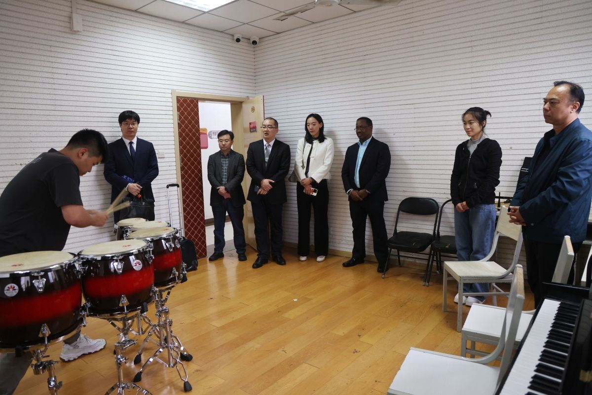 会见开始前,莫克西主席访问音乐学院,欣赏并体验中国传统民族乐器演奏,与师生亲切交流。