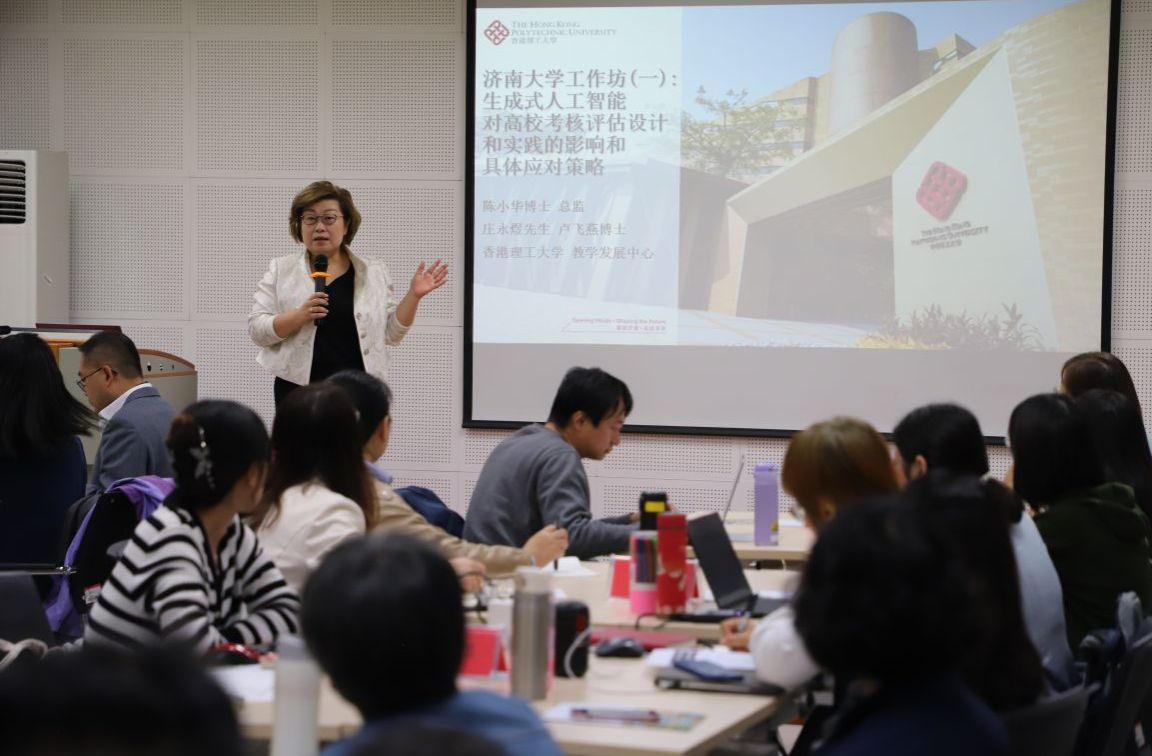 香港理工大学教学发展中心总监陈小华、教学发展主任卢飞燕、助理教学发展主任庄永煜主持《生成式人工智能对高校考核评估设计和实践的影响及具体应对》工作坊,聚焦生成式人工智能在教学过程中可能产生的教育伦理风险,探讨其对高校教学考核评估设计和实践的影响。几位专家围绕新形势下教学评价的目的、焦点、原则,从教导学生正确使用、确保教师主体地位、完善系统管理制度等方面对生成式人工智能教育治理和教学评价提出设计思路和策略建议。
