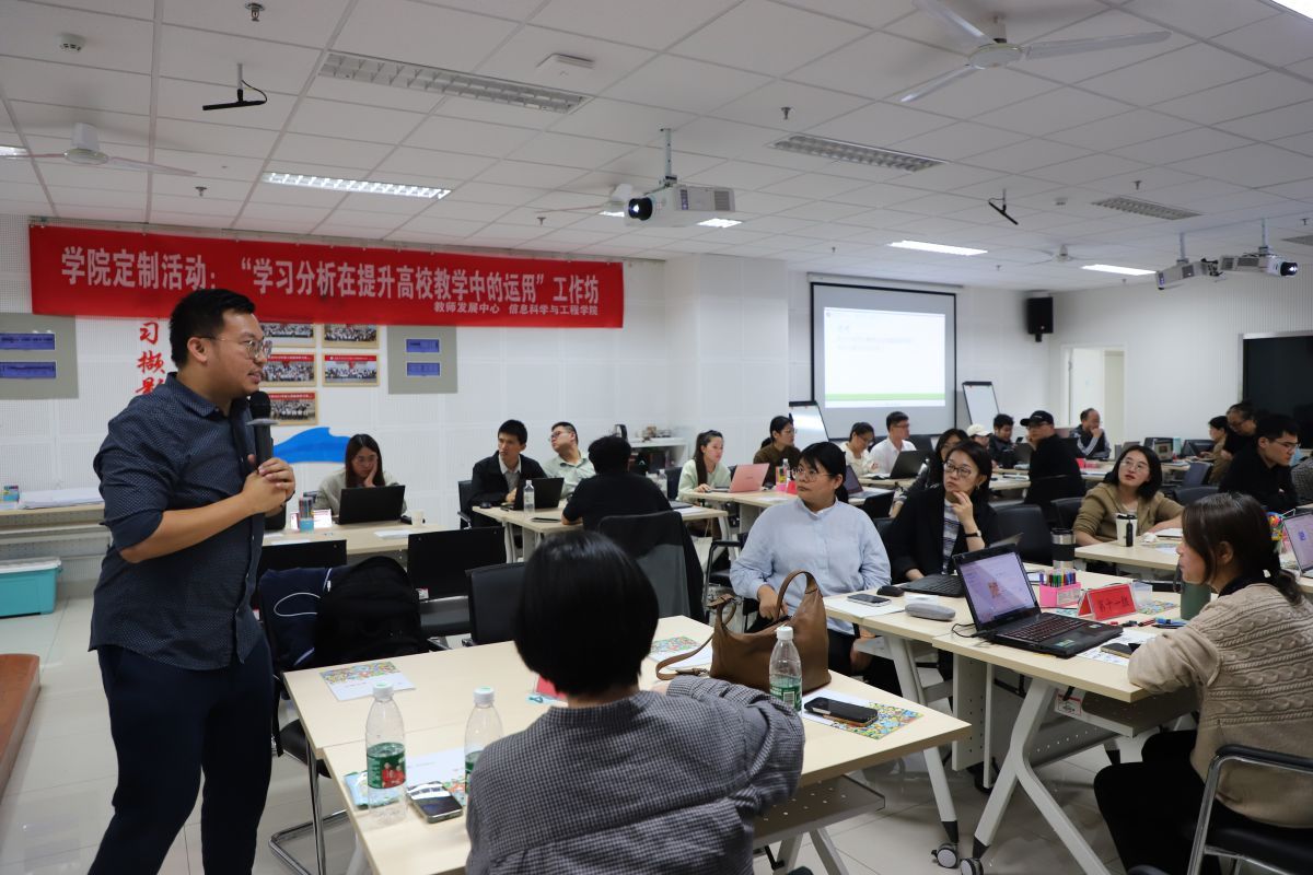 信息科学与工程学院定制并承办“学习分析在提升高校教学中的运用”工作坊。工作坊由香港理工大学教学发展中心教学发展主任陈峻笙、谢丝琪主讲。谢丝琪结合香港理工大学在数据赋能教学改革上所做的创新性突破,分享了香港理工大学如何利用先进的学习分析工具对学习数据进行采集、运用、评估和反馈的机制,以及如何通过人工智能增强教学决策能力、优化教学效果。陈峻笙指导老师们现场操作,感受数据驱动的教学改进带来的变革性学习体验,为我校教师探索人工智能赋能教学实践提供了新的机遇和途径。