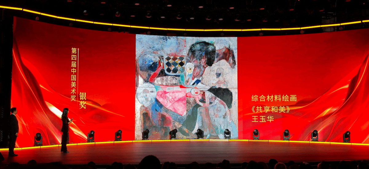 sunbet申搏官方网站美术与设计学院王玉华副教授的综合材料绘画作品《共享和美》,荣获第四届“中国美术奖”银奖,这是全国十四届美展综合材料绘画领域的最高奖项,能在每五年举办一次的全国美展获得银奖代表着我校美术综合材料绘画首次在“中国美术奖”评选中取得重大突破,为我校赢得了极高的荣誉与肯定。本次“中国美术奖”我省作者共取得两银一铜的优异成绩。