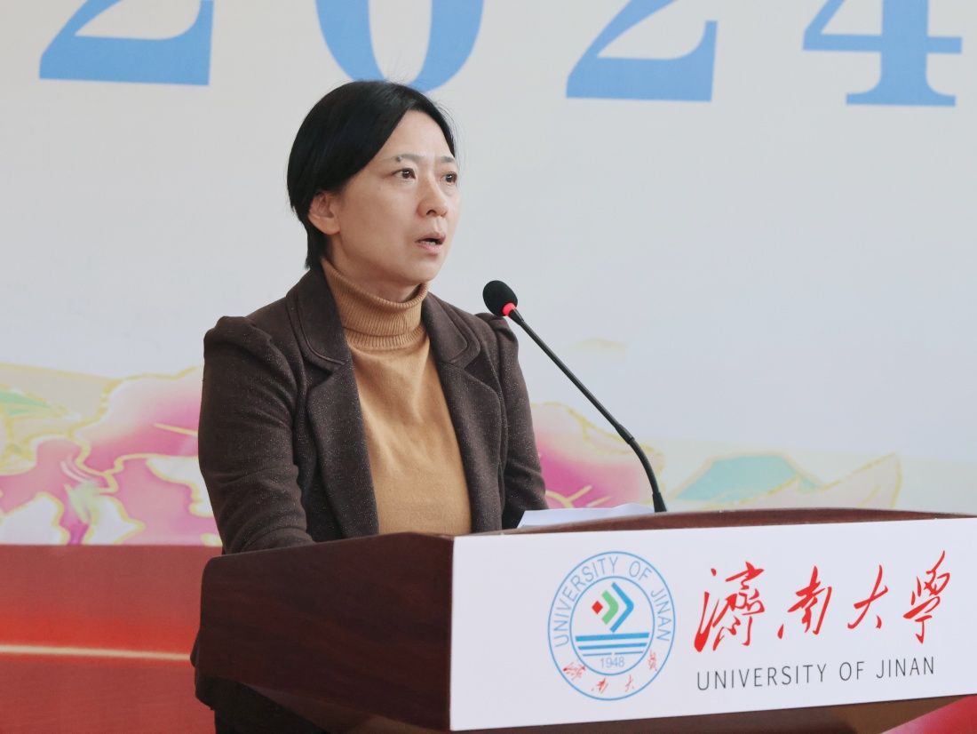 商华在致辞中简要介绍了学校及体育学院建设发展情况。她表示,民族健身操大赛为推广民族体育健身活动、推动全民健身、培养民族体育人才、弘扬中华优秀传统文化提供了重要交流平台。她指出,学校高度重视民族传统体育发展,下一步学校将以特色课程培育、专业社团建设为载体,大力开展科学研究、展示交流等工作,为山东省传承和弘扬民族文化、推动全民健身、增进民族团结、提升全民身体素质作出应有贡献。